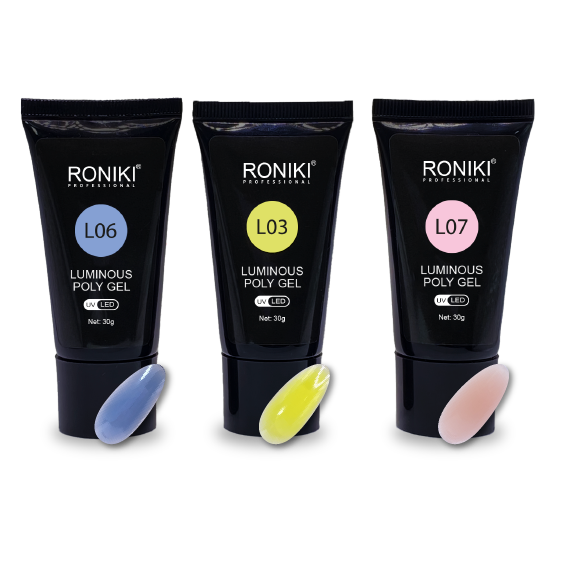 El Luminous es un polygel innovador con efecto luminoso que alumbra en la oscuridad, perfecto para crear diseños de uñas únicos y llamativos. Disponible en los colores L03 (amarillo), L06 (azul) y L07 (rosado). Su textura es fácil de moldear y ofrece una excelente durabilidad. Se activa con luz UV para lograr su efecto glow-in-the-dark.