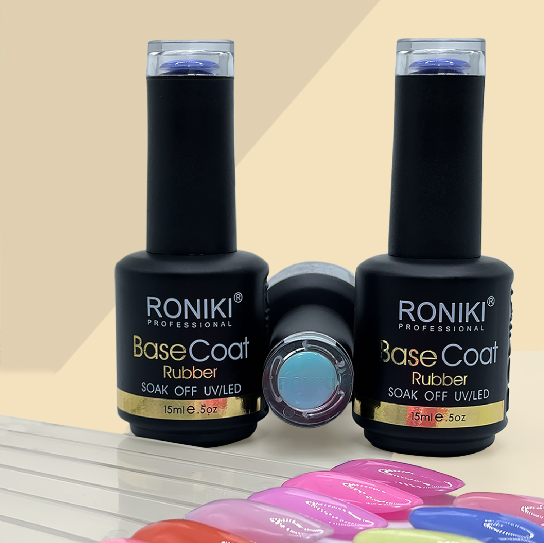 La Base Rubber Color de Roniki es una base autonivelante y de larga duración, diseñada para fortalecer, proteger y aportar color a las uñas naturales.