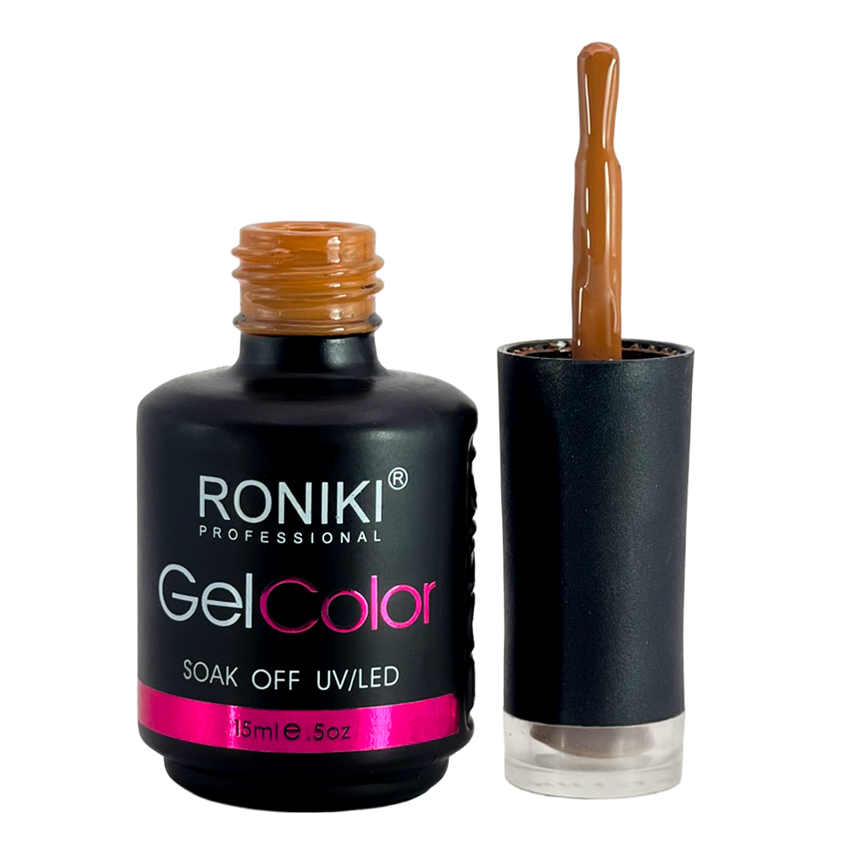 3. Color: aplica 1–2 capas delgadas de esmalte Roniki, curando cada una con lámpara UV o LED de 74 watts por 60 segundos.