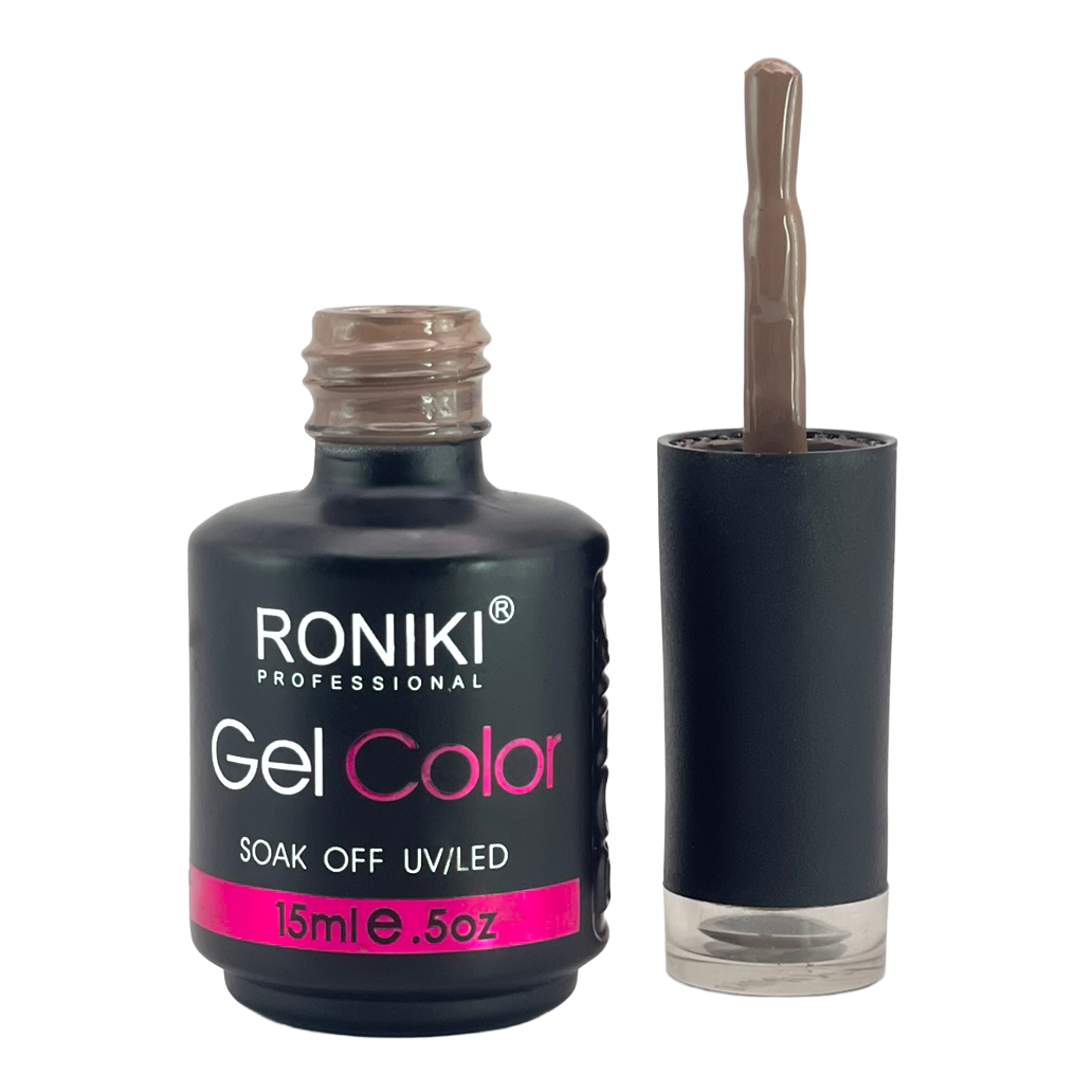 3. Color: aplica 1–2 capas delgadas de esmalte Roniki, curando cada una con lámpara UV o LED de 74 watts por 60 segundos.