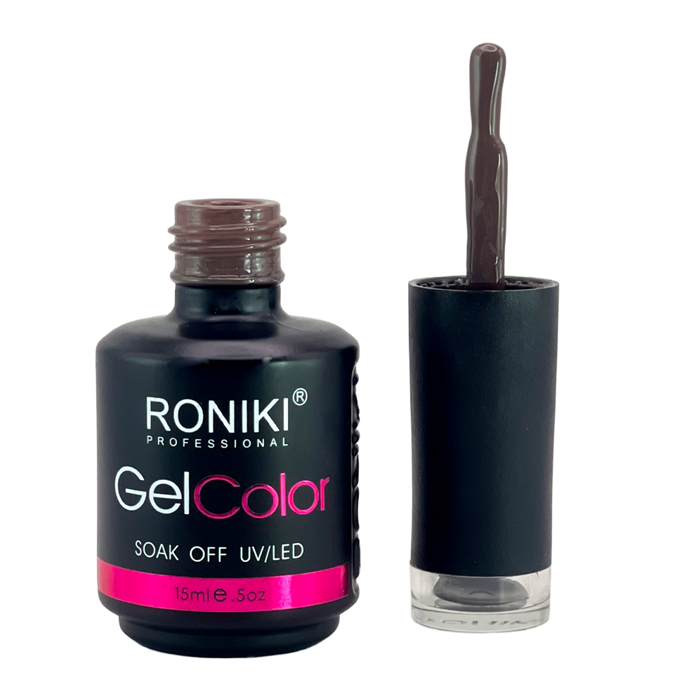 3. Color: aplica 1–2 capas delgadas de esmalte Roniki, curando cada una con lámpara UV o LED de 74 watts por 60 segundos.