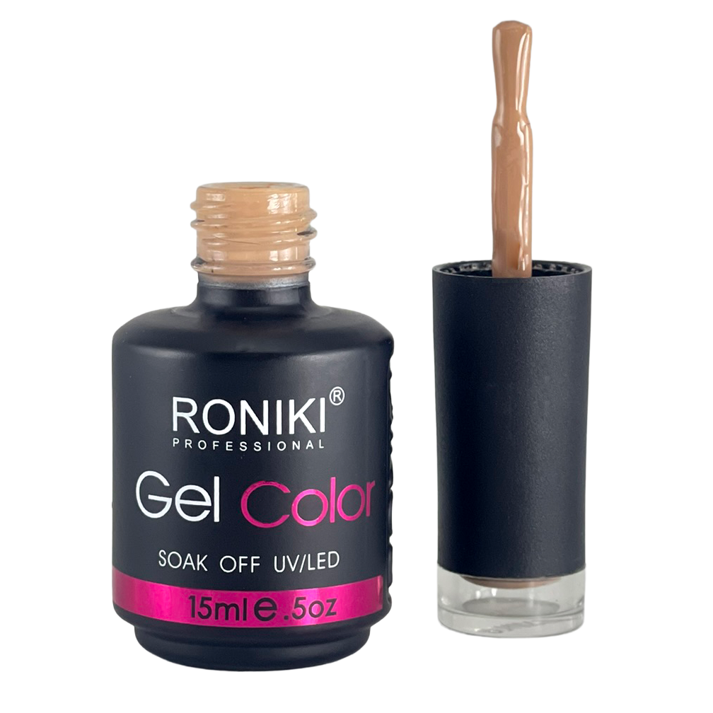 3. Color: aplica 1–2 capas delgadas de esmalte Roniki, curando cada una con lámpara UV o LED de 74 watts por 60 segundos.