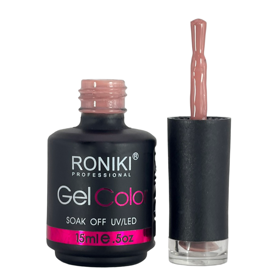 3. Color: aplica 1–2 capas delgadas de esmalte Roniki, curando cada una con lámpara UV o LED de 74 watts por 60 segundos.