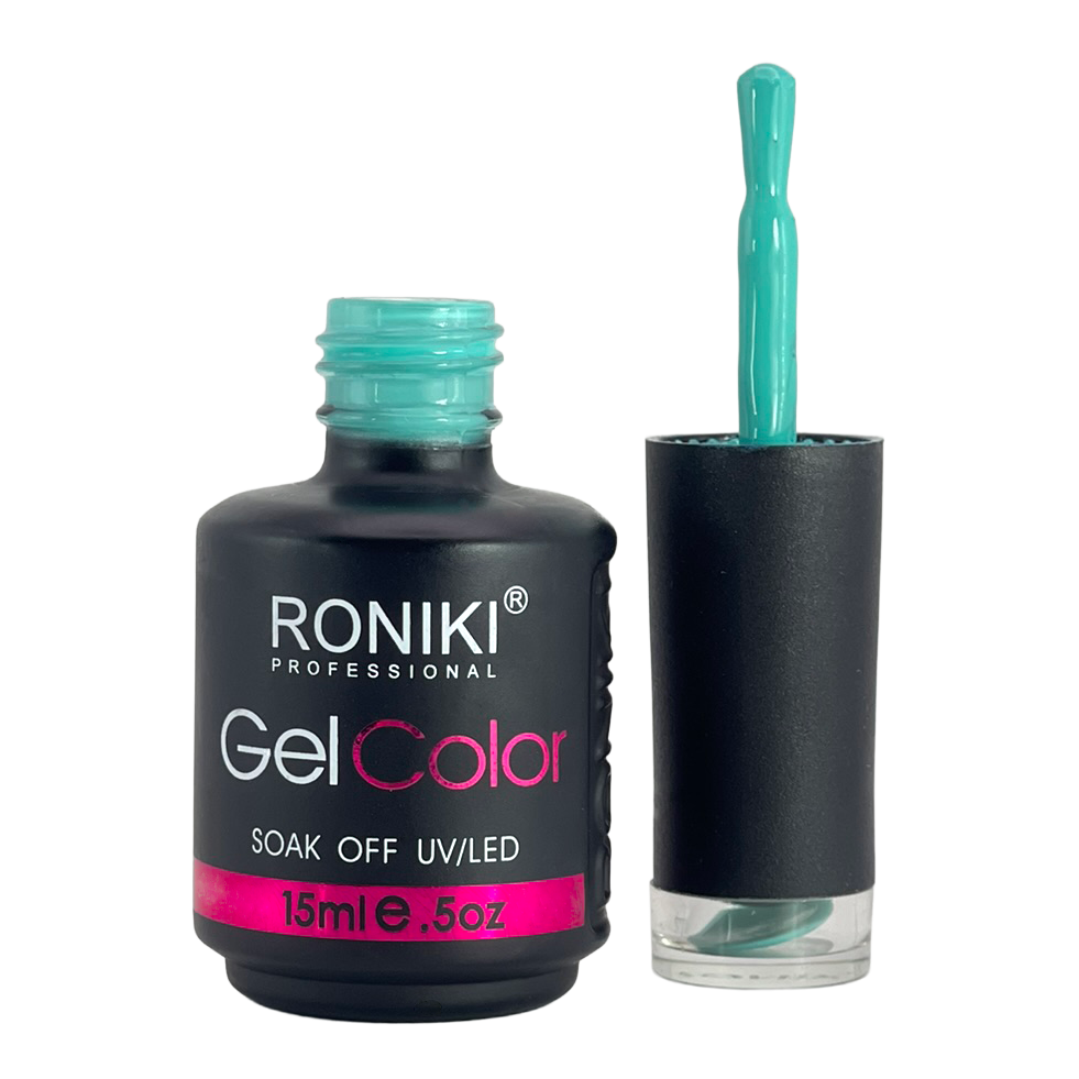 3. Color: aplica 1–2 capas delgadas de esmalte Roniki, curando cada una con lámpara UV o LED de 74 watts por 60 segundos.