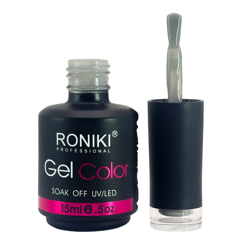3. Color: aplica 1–2 capas delgadas de esmalte Roniki, curando cada una con lámpara UV o LED de 74 watts por 60 segundos.