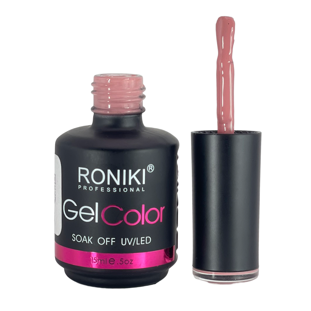 3. Color: aplica 1–2 capas delgadas de esmalte Roniki, curando cada una con lámpara UV o LED de 74 watts por 60 segundos.