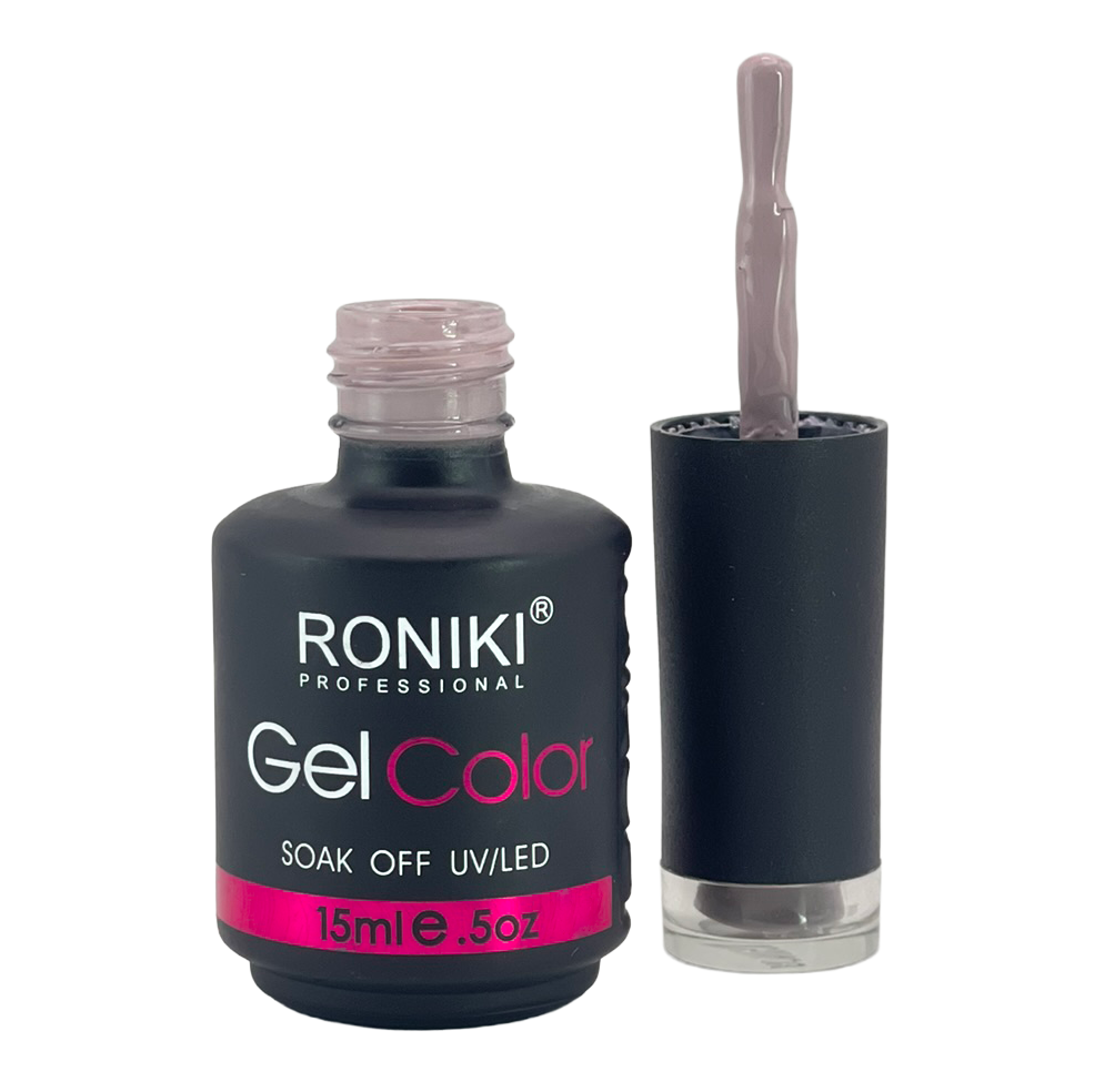 3. Color: aplica 1–2 capas delgadas de esmalte Roniki, curando cada una con lámpara UV o LED de 74 watts por 60 segundos.