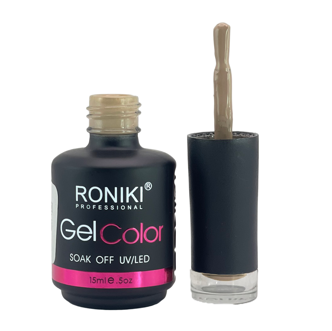 3. Color: aplica 1–2 capas delgadas de esmalte Roniki, curando cada una con lámpara UV o LED de 74 watts por 60 segundos.