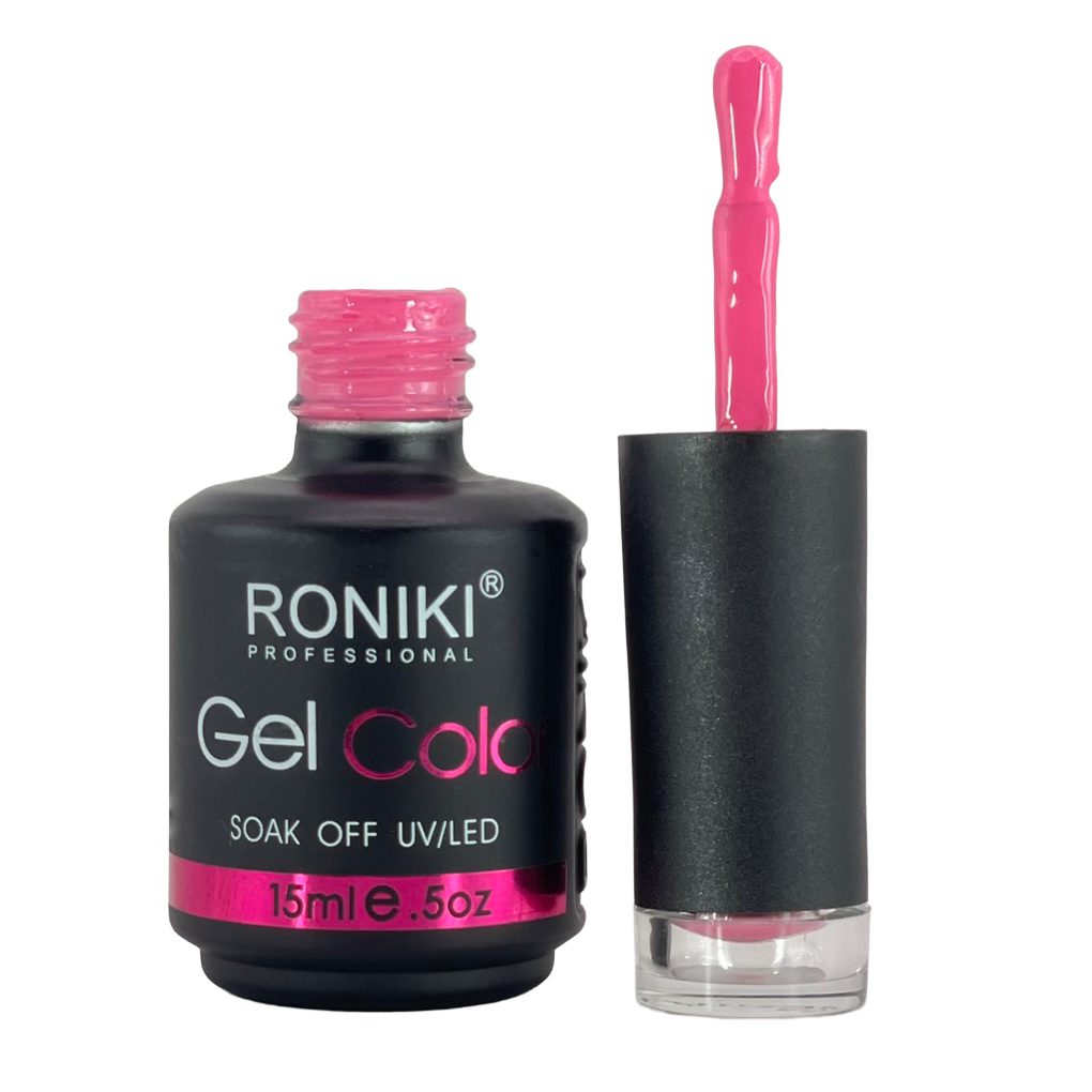 3. Color: aplica 1–2 capas delgadas de esmalte Roniki, curando cada una con lámpara UV o LED de 74 watts por 60 segundos.