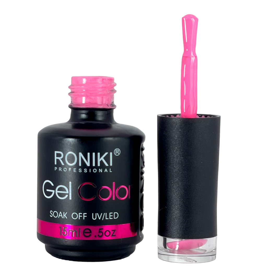 3. Color: aplica 1–2 capas delgadas de esmalte Roniki, curando cada una con lámpara UV o LED de 74 watts por 60 segundos.