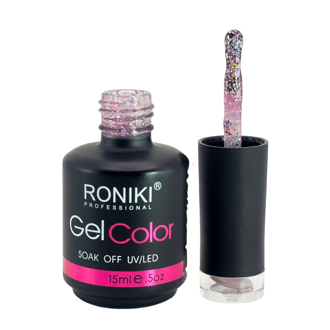 3. Color: aplica 1–2 capas delgadas de esmalte Roniki, curando cada una con lámpara UV o LED de 74 watts por 60 segundos.