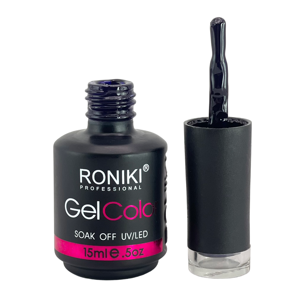 3. Color: aplica 1–2 capas delgadas de esmalte Roniki, curando cada una con lámpara UV o LED de 74 watts por 60 segundos.