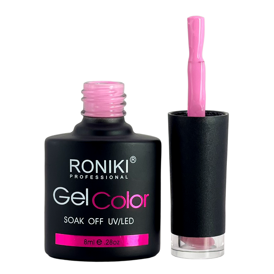 3. Color: aplica 1–2 capas delgadas de esmalte Roniki, curando cada una con lámpara UV o LED de 74 watts por 60 segundos.