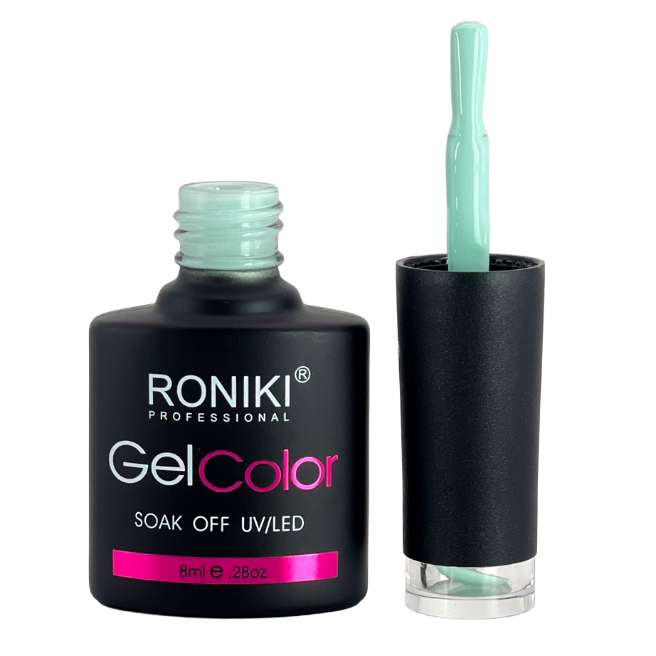 3. Color: aplica 1–2 capas delgadas de esmalte Roniki, curando cada una con lámpara UV o LED de 74 watts por 60 segundos.