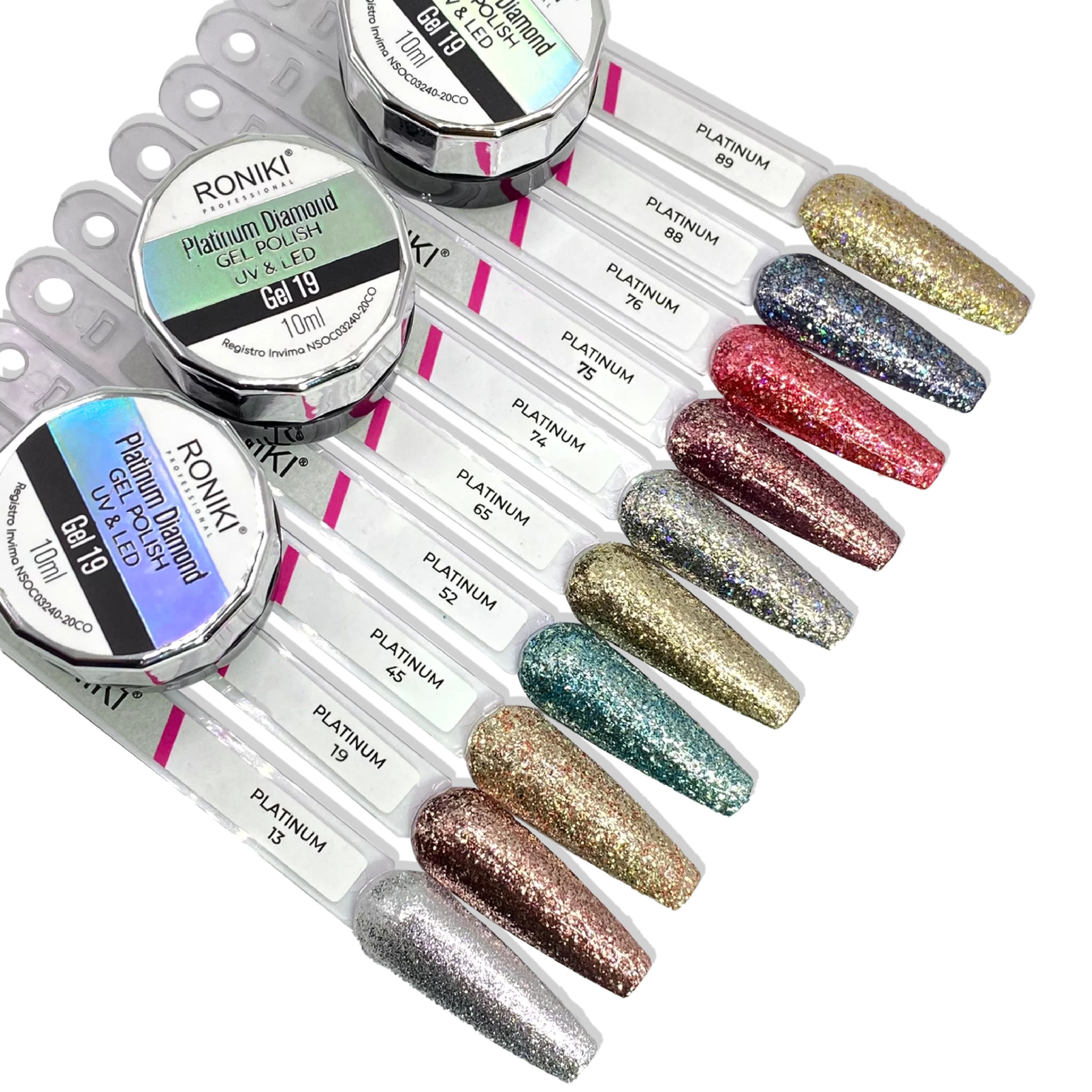 Los Platinum Diamond Gel Polish son esmaltes en gel semipermanente con un efecto ultra brillante y lleno de destellos, gracias a su alta concentración de partículas de glitter y diamante pulverizado.